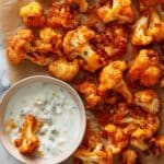 - Serve: Plate the crispy buffalo cauliflower and serve immediately with the homemade blue cheese dressing on the side for dipping.