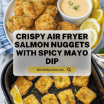 Keywords: salmon nuggets, air fryer salmon, healthy salmon recipe, crispy salmon bites, seafood appetizer, easy air fryer recipes, sriracha mayo dip