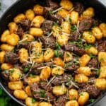 Store leftover steak bites and gnocchi in an airtight container in the refrigerator for up to 3 days. Reheat gently in the air fryer at 350°F for 3 to 5 minutes to regain crispness or warm in a skillet over medium heat. Avoid microwaving to prevent sogginess.