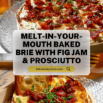 This elegant Baked Brie with Fig Jam and Prosciutto is a perfect appetizer for gatherings. Creamy brie cheese is scored and filled with a spiced fig jam mixture, topped with savory prosciutto, then baked until golden and melty. Drizzled with honey and garnished with fresh chives, it offers a harmonious blend of sweet, smoky, and salty flavors.