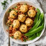 These Baked Chicken Meatballs are a delicious and healthier alternative to traditional beef meatballs. Made with ground chicken, parmesan, fresh herbs, and simple seasonings, they are easy to prepare and bake to a juicy, tender perfection. Perfect as a main dish, appetizer, or served over pasta or salad.