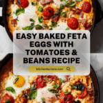 A delicious and vibrant baked feta eggs recipe featuring juicy cherry tomatoes, creamy feta cheese, white beans, and flavorful herbs, topped with perfectly baked eggs. This comforting Mediterranean-inspired dish is ideal for breakfast, brunch, or a light dinner, served with crusty bread or pita for dipping.