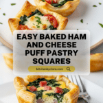 These Baked Ham and Cheese Squares are flaky puff pastry pockets filled with a creamy ham and cheese mixture, sautéed onions, and optional spinach. Perfect as a savory appetizer or snack, they are baked to a golden brown with a simple egg wash glaze for a beautiful finish.