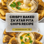 Baked pita chips seasoned with fragrant za’atar make a delicious and healthy snack or appetizer. Crispy, flavorful, and easy to prepare, these chips are perfect for dipping or enjoying on their own.