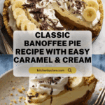 Keywords: Banoffee Pie, British dessert, banoffee, caramel pie, no-bake pie, whipped cream dessert, banana dessert, easy dessert recipe