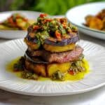 Beef Tenderloin Chimichurri Stacks are an elegant yet approachable dish perfect for impressing guests or enjoying a special weeknight dinner. Tender beef filets are layered with crispy smashed potatoes and vibrant chimichurri sauce, creating a delightful combination of flavors and textures.