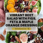 This vibrant beet salad combines the earthiness of roasted beets with sweet figs, tangy feta, and crunchy quick candied pecans. Tossed in a bright maple orange dressing, it’s a fresh and flavorful dish perfect for any season.