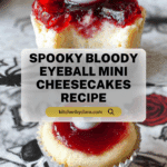 These Bloody Eyeball Cheesecakes are a spooky and delicious treat perfect for Halloween or any eerie-themed party. Featuring a crunchy Oreo cookie base, creamy white chocolate-infused cheesecake filling, and topped with vibrant raspberry sauce and candy eyes, these mini cheesecakes combine sweet and tart flavors with a playful visual twist.