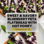 Keywords: blueberry flatbread, feta cheese flatbread, hot honey recipe, quick appetizers, sweet and savory flatbread