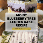 Keywords: Blueberry tres leches cake, tres leches cake recipe, blueberry dessert, moist sponge cake, blueberry whipped cream, Mexican dessert, berry cake