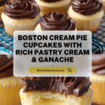 Keywords: Boston Cream Pie Cupcakes, cupcake recipe, pastry cream filled cupcakes, chocolate ganache topping, classic dessert cupcake