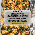 Keywords: breakfast casserole, sausage casserole, broccoli rabe breakfast, baked egg casserole, savory breakfast bake, brunch recipe