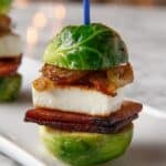 Keywords: Brussels sprouts sliders, appetizer, party food, roasted Brussels sprouts, bacon, brie cheese, onion jam