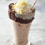 This shake is best enjoyed fresh. If you have leftovers, store them in an airtight container in the refrigerator for up to 24 hours. Stir well before drinking, but note the texture may change. It is not recommended to freeze the cake shake once assembled.