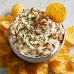 This luscious Caramelized Onion Dip features sweet, deeply caramelized onions blended into a creamy mixture of cream cheese, sour cream, and mayonnaise. Perfect as a savory snack or party appetizer, it pairs beautifully with crunchy potato chips for a delicious contrast of textures and flavors.