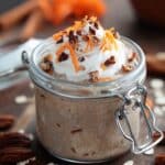 - Optional warming & serving: Before serving, optionally microwave each jar for about 30 seconds to slightly warm the oats. Stir well. Top with whipped cream, a sprinkle of cinnamon, chopped pecans, and additional grated carrot if desired for added texture and flavor.
