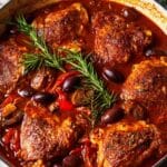 This classic Chicken Cacciatore recipe features tender, bone-in chicken cooked in a rich, savory tomato sauce with mushrooms, red capsicum, olives, and aromatic herbs. Braised slowly to develop deep flavors, it is perfect served over creamy mashed potatoes or polenta for a comforting, rustic Italian meal.