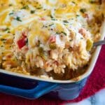 Keywords: Chicken Fajita Casserole, fajita casserole, baked fajitas, chicken casserole, Tex-Mex casserole, easy dinner recipes, cheesy fajitas, weeknight casserole