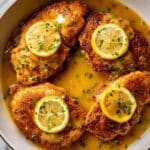 - Serve: Return the cooked chicken and lemon slices to the pan and spoon the thickened sauce over them. Sprinkle with chopped parsley for garnish. Serve immediately, making sure to use all the flavorful sauce with the chicken.