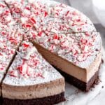 - Remove Pan and Add Topping: Carefully run a plastic knife along the edges of the pie to detach it from the pan sides. Remove the sides of the springform pan. Just before serving, sprinkle the top with powdered sugar and crushed peppermint candy canes for a festive finish.