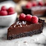 This decadent Chocolate Raspberry Tart features a crisp Oreo cookie crust filled with luscious dark chocolate ganache infused with raspberry jam, topped with fresh raspberries and a sprinkle of flaky sea salt. Perfectly balanced between rich chocolate and tangy fruit, this elegant dessert is ideal for special occasions or indulgent treats.