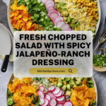 This chopped salad with jalapeño-ranch dressing is a vibrant and refreshing mix of crisp vegetables, creamy avocado, and a zesty, spicy dressing. It’s perfect for a light lunch or as a colorful side dish to your favorite meal.