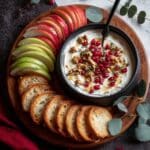 Christmas Feta is a festive and creamy cheese spread made with feta, cream cheese, garlic, and honey, beautifully garnished with pomegranate seeds, candied nuts, thyme, black pepper, and citrus zest. This flavorful spread is perfect for holiday gatherings and pairs wonderfully with crackers or fresh bread.