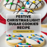 These festive Christmas Light Cookies are soft, buttery sugar cookies decorated with a smooth white frosting base and detailed black piping to resemble light strands, topped with colorful mini M&M’s that mimic holiday lights. Perfect for holiday parties and family gatherings, these charming cookies bring seasonal cheer with their delightful taste and creative presentation.