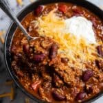 Store leftover chili in an airtight container in the refrigerator for up to 4 days. Reheat gently on the stove or in the microwave, stirring occasionally to heat evenly. Chili also freezes well—freeze in portions for up to 3 months and thaw overnight in the fridge before reheating.