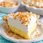 Keywords: coconut cream pie, homemade pie crust, coconut custard, whipped cream topping, tropical dessert