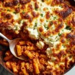 This Cottage Cheese Baked Ziti is a comforting Italian-American classic that combines tender tube-shaped pasta with a savory sausage marinara sauce, creamy cottage cheese, and melted mozzarella and Parmesan. Baked to golden perfection, it offers a rich, cheesy, and hearty meal perfect for family dinners or gatherings.