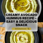 Avocado hummus is a creamy, flavorful twist on the classic dip, combining the richness of ripe avocados with the traditional chick peas and tahini. It’s perfect for serving with pita chips or fresh vegetables as a healthy snack or appetizer.