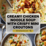 Keywords: creamy chicken noodle soup, homemade chicken soup, chicken noodle recipe, mini croutons, comfort food, stovetop soup, easy chicken soup