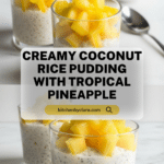 Keywords: creamy coconut rice pudding, coconut milk dessert, tropical rice pudding, pineapple rice pudding, vegan dessert, stovetop rice pudding, star anise dessert