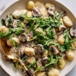 Keywords: creamy mushrooms, gnocchi recipe, vegetarian dinner, quick stovetop meal, mushrooms and gnocchi, arugula recipe, Italian comfort food