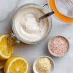 - Blend Ingredients: Place the tofu, lemon juice, maple syrup, Dijon mustard, salt, and optional garlic powder into a blender, food processor, or use an immersion blender. Blend until the mixture is completely smooth and creamy.