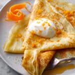 - Serve: Serve the crepes Suzette fresh and hot, optionally accompanied by a scoop of ice cream for a classic, indulgent dessert experience.
