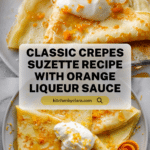 Classic French Crepes Suzette featuring thin, delicate crepes served with a rich, flambéed orange butter sauce made with Grand Marnier, orange zest, and sugar. This elegant dessert combines smooth crepe batter with a citrusy, buttery sauce ignited for a dramatic presentation and vibrant flavor.