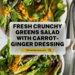 This Crunchy Greens with Carrot-Ginger Dressing is a refreshing and vibrant salad that combines crisp lettuce with a zesty, creamy dressing. The carrot and ginger blend adds a bright, slightly sweet spice that perfectly complements the fresh mint.