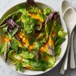 This Crunchy Greens with Carrot-Ginger Dressing is a refreshing and vibrant salad that combines crisp lettuce with a zesty, creamy dressing. The carrot and ginger blend adds a bright, slightly sweet spice that perfectly complements the fresh mint.
