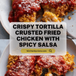 This Crunchy Tortilla Fried Chicken Cutlets recipe offers a delightful twist on classic fried chicken with a crispy coating made from crushed tortilla chips. Paired with a homemade chile tomato salsa and crumbled queso cotija, it’s an irresistible dish full of bold flavors and satisfying textures.