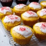 - Prepare Icing and Decorate: Mix ½ cup icing sugar with just enough water to create a thick paste. Spread a teaspoon of this icing onto the top of each cooled muffin and immediately sprinkle with freeze dried strawberry powder. Allow the icing to set before serving.