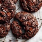 - Finish and cool: While cookies are warm, sprinkle with flaky sea salt. Let cookies rest on the baking sheet for about 3 minutes to firm up before transferring to a cooling rack.