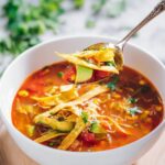 Store leftover soup in an airtight container in the refrigerator for up to 3 days. Reheat gently on the stove or in the microwave, adding a splash of water or broth if it thickens too much. Keep tortilla strips separate and only add them when serving to maintain their crispiness.