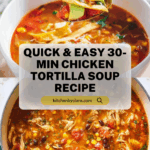 This easy 30-minute homemade chicken tortilla soup is a warm, comforting dish full of bold flavors and hearty ingredients. Perfect for busy weeknights, it combines tender chicken, spicy peppers, and crispy tortilla strips for a satisfying meal.