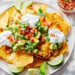 - Serve: Carefully transfer the nachos on the parchment to a serving plate. Add your choice of toppings such as pico de gallo, sour cream, avocado slices, and fresh cilantro before serving.