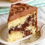 This Easy Marble Cake is a classic dessert featuring a tender vanilla sponge swirled with rich bittersweet chocolate batter. The two-flavor cake is topped with a smooth cocoa frosting made with butter, shortening, and cocoa powder. Perfect for celebrations or anytime you crave a delightful, marbled treat with luscious chocolate-y layers.