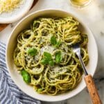 This Easy Pesto Pasta recipe features perfectly cooked spaghetti tossed in a homemade basil pesto sauce, finished with freshly grated Parmesan cheese and fresh basil leaves. It’s a simple, flavorful dish that comes together quickly, making it ideal for a satisfying weeknight meal.