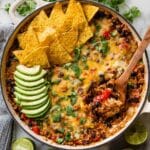 This Easy Taco Skillet is a flavorful, one-pan Mexican-inspired dish featuring ground beef, vibrant bell peppers, tender black beans, and zesty fire-roasted tomatoes, all layered with cooked rice and a melty Mexican cheese blend. Finished under the broiler with fresh toppings like cilantro, avocado, lime, and sour cream, it’s perfect for a quick and satisfying weeknight meal.