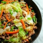 A quick and flavorful Chinese ground beef and cabbage stir fry that combines tender beef, crisp cabbage, and earthy shiitake mushrooms in a savory soy and sesame sauce. Perfect for a healthy weeknight dinner that’s both satisfying and easy to prepare.